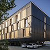 …ist aber ein umgebauter, ehemals schmuckloser 60er-Jahre-Bau: Die Unternehmenszentrale der Bayerischen Staatsforsten in Regensburg. 250 Kubikmeter Holz sind hier verbaut, vorwiegend Lärche und Eiche. Ein zusätzlicher vierter Stock entstand in Holzbauweise auf dem alten Dach.